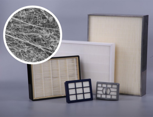 ePTFE空气净化复合材料是将ePTFE薄膜通过高温热复合 胶复合等方式贴合到各种无纺布基材上进行高精度过滤的产品。
